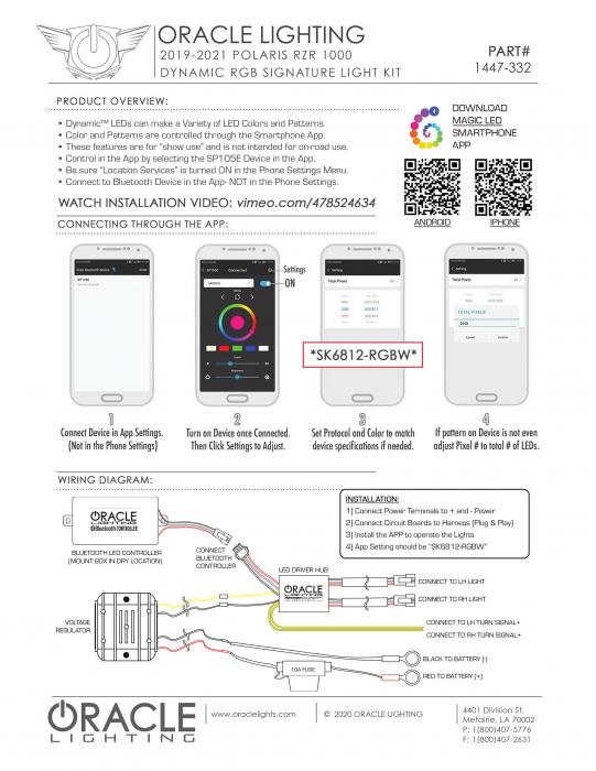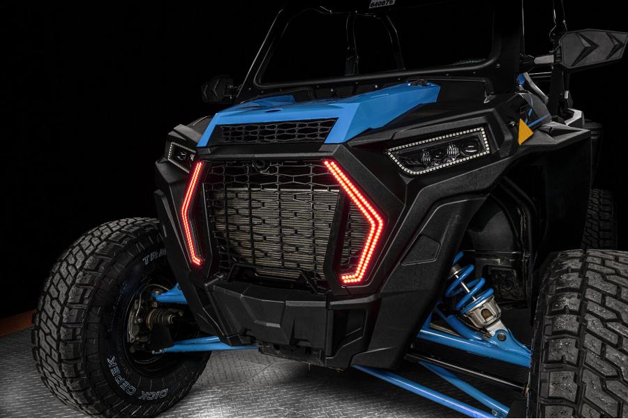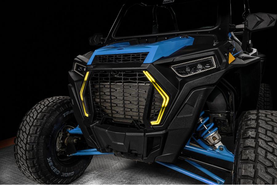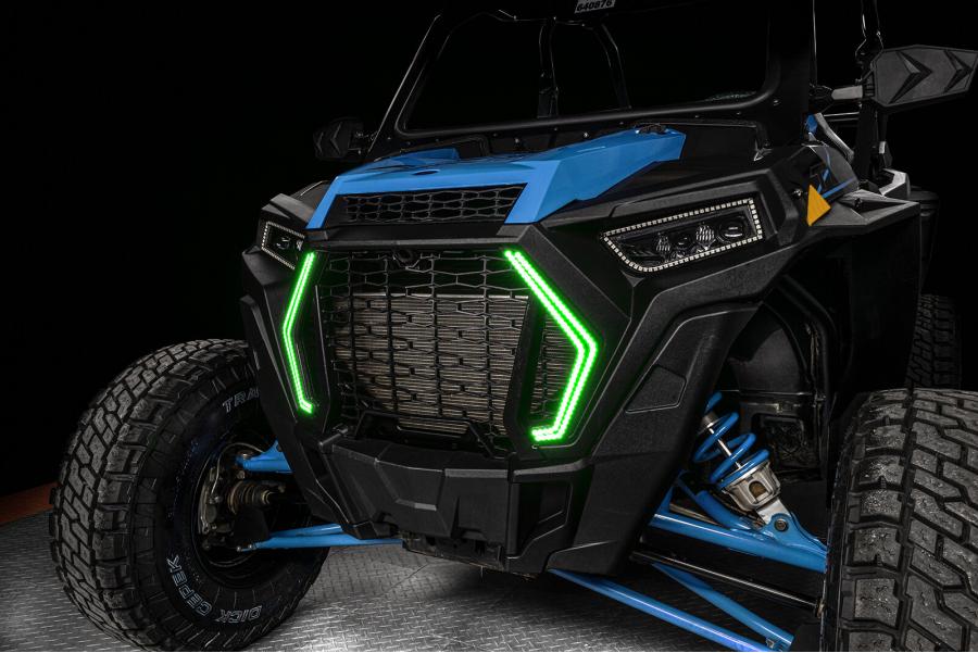 Introducing the ORACLE Lighting Dynamic ColorSHIFT Surface Mount DRL Signature Light ("Fang Light") for the 2019-2021 Polaris RZR Turbo and 1000 models. Dynamic ColorSHIFT features individually addressable LEDs which pack a ton of unique features. The Dynamic features allow the user to run multiple moving color patterns through the LEDs, creating a vivid eye-catching lighting effect. The new RGB+A (RGB+ Amber LED) SWITCHBACK line-up features Amber LEDs creating the exclusive Dynamic FLOW turn signal effect. This motion effect has a sequential indicator which sends the LEDs in a wave towards the direction you are turning. The latest advancement in our Dynamic LED line is the Dynamic DRL Startup Sequence. This feature creates an exciting motion effect when you start up the vehicle, giving the appearance of the DRL lights "waking up". This new ORACLE Dynamic DRL Kit features our patent-pending waterproof LED modules which install directly onto the lens surface. Through the App you can easily make standard white colors as well as any static colors using the LED color wheel. What makes these DYNAMIC halos more unique is that you can also display a variety of moving patterns within the app. With over 200 different patterns there is something to fit every color scheme you can imagine! Installation is very easy thanks to the IP67 waterproof characteristics of the Halos, these LEDs are completely encapsulated in a waterproof resin which makes them completely waterproof and allows them to be installed onto the outside of the lens. Wiring is now easy with the plug-and-play connectors between the LED modules and LED driver and LED controller. Simply plug the halos into the LED driver and connect the provided leads to + and - to the battery. The cables even have ring terminals already installed for the closest thing to "Plug-and-Play" you can get with a kit like this.