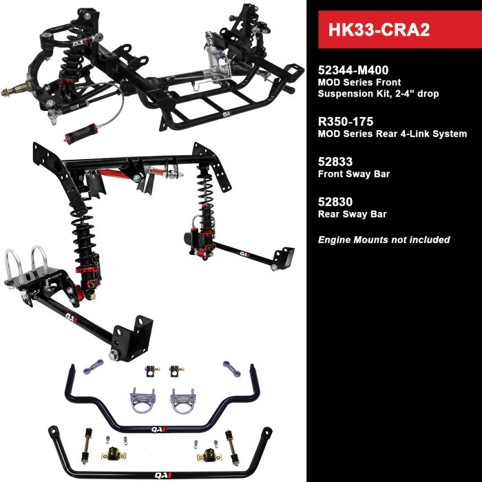 4-way adjustable MOD shocks help drivers find grip in any setting. They make it easy to adapt to different events like autocross, road courses, speed stop challenges and more by changing out valve packs in minutes. It's also simple to go from race-oriented suspension to comfortable street driving between events. Handling kits come with front and rear sway bars, which further reduce body roll. Drag kits come with a rear sway bar for better traction and a free moving front end.