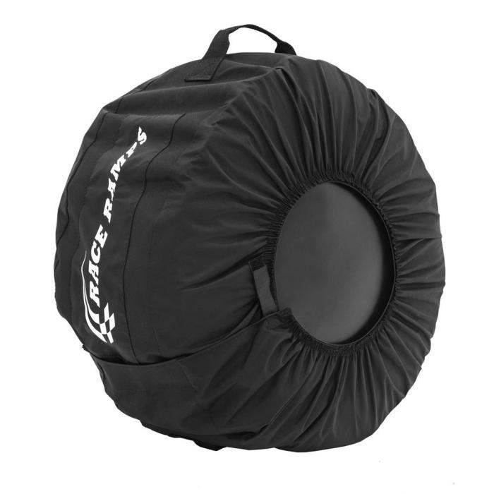 Each tire cover is manufactured with two types of material for more durable long-term use. The center is made from 300-denier polyester with PVC backing, and the sides are made from 400-denier polyester with urethane backing. Each features the Race Ramps logo, and they are made in the USA just like our Race Ramps.