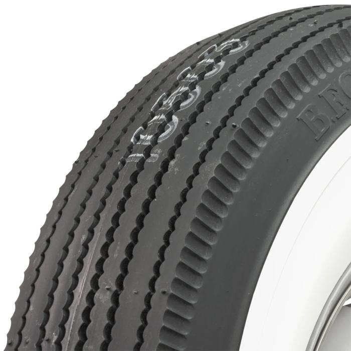 With genuine wide whitewall construction and period-correct sawtooth tread design, these BFGoodrich tires are the ultimate classic tire for collector vehicles. These tires feature a nice pie crust upper sidewall styling and beautiful wide whitewalls. When shopping for tires for vintage cars, look no further than these authentic BFGoodrich wide whites. BFGoodrich bias ply wide whitewall tires are made in the USA and DOT/ECE (European Community) approved where applicable. Wide whitewalls are smooth, with all stampings and lettering in the the black portion of the sidewall and are covered by our exclusive life of the tread warranty. Please note that dimensions listed tread width, section width and overall diameter are non-scientific and based on an inflated tire, mounted on a wheel. Dimensions may vary due to rim width and inflation pressure. Tread patterns and sidewall styles vary, please click on individual tires below to view photos.