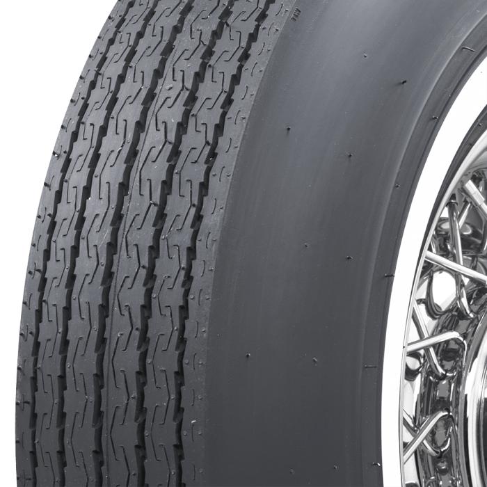 This product features a genuine narrow whitewall sidewall style. This means that the bright white rubber is added directly to the tire sidewall during initial construction of the carcass, resulting in a truly integrated, high-quality product after vulcanization. When we reference "narrow whitewall" tires, we typically mean a whitewall that measures less than two inches, but it can also mean a whitewall that does not reach all the way into the bead. Narrow whitewall tires are popular for many cars built in 1960's all the way into the 1990's.