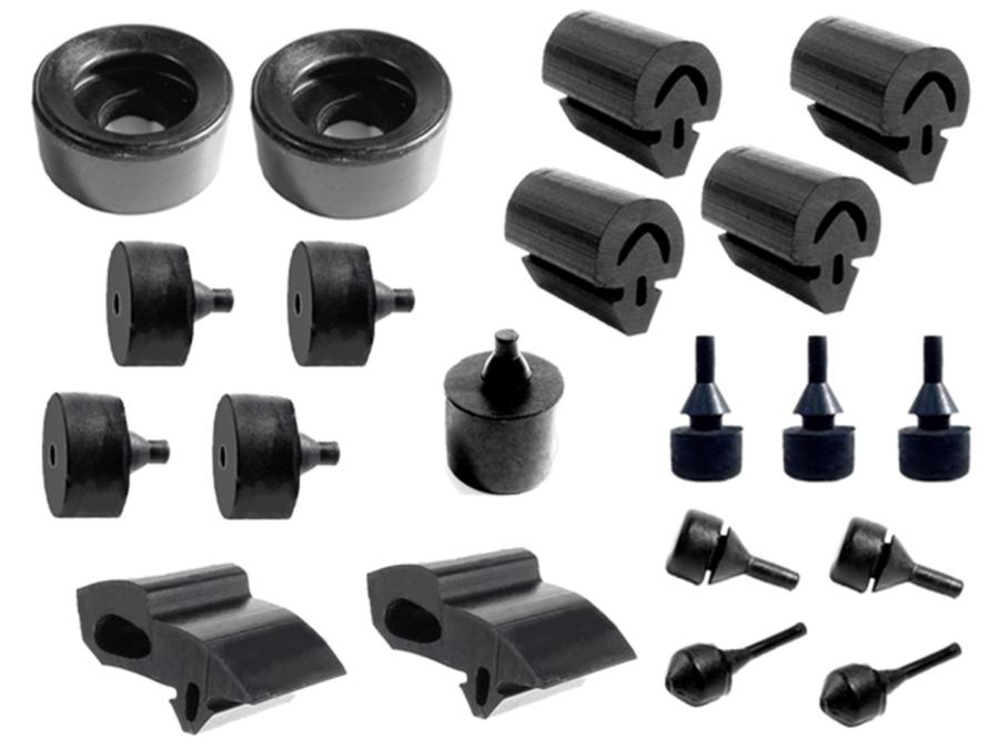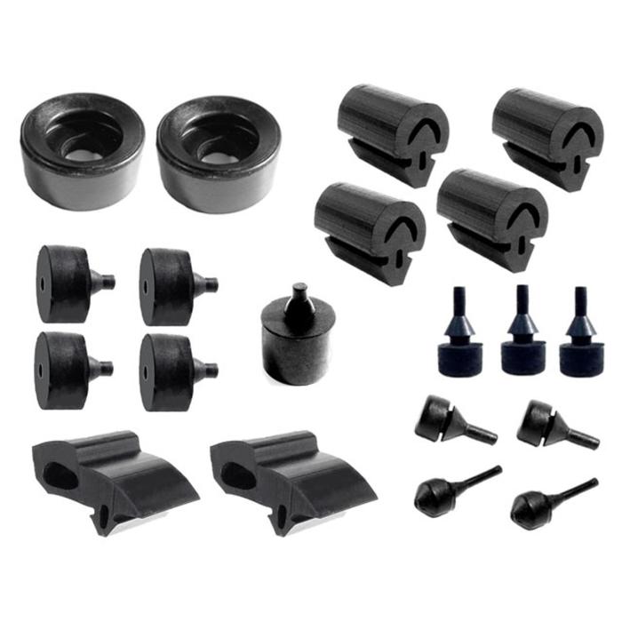 For the 1970 Plymouth Barracuda, this snap-in bumper kit is a 20-piece set designed to enhance and protect your classic car. The kit includes (4) DB 50-M, (2) HA 8-A, (2) HF 61, (2) SB 122, (4) SB 124, (1) SB 125, (2) SB 78, and (3) SB 86, all crafted from high-quality compounds to ensure durability and a perfect fit. These bumpers are tailored to provide long-lasting performance, helping to maintain the integrity of your vehicle's body by absorbing impacts and reducing wear over time. Each piece is precision-made for easy installation, snapping securely into place to save you time and effort. Backed by Metro’s Platinum Warranty, this kit offers 30 years of coverage, giving you peace of mind and confidence in your purchase.