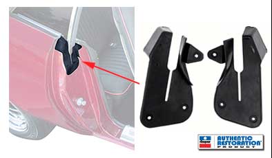 Reproduction of the original door jamb rubber U shaped rubber seals designed for use on 1970-74 Mopar E-Body 2 door hardtop models. Each seal mounts on the rear top edge of the quarter panel door jamb area at the edge of the door glass to prevent moisture from entering the into the metal. Designed to factory specifications and manufactured in rubber with proper mounting points. Sold in pairs. Includes mounting screws.