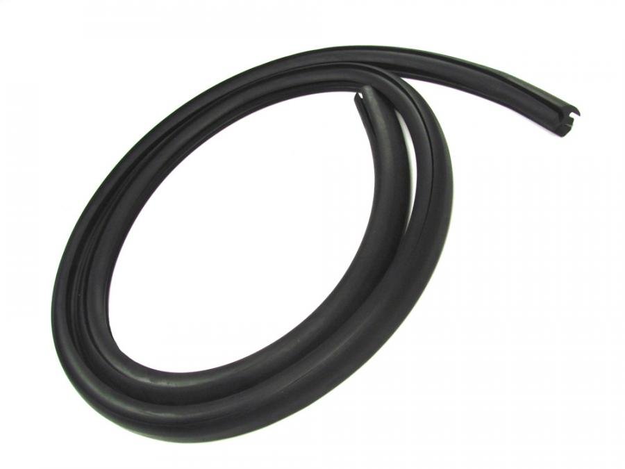 - Rear window weatherstrip seal with integrated trim groove for lockstrip retention.