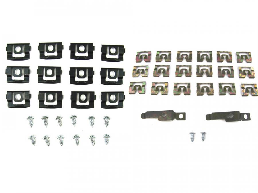 Precision Fits MCK-3440-71 is a molding clip kit designed for 2-door hardtop models to secure windshield and rear window trim. The kit provides direct-fit replacement clips that restore factory alignment, reduce rattles and wind noise, and help prevent water intrusion around glass openings. Built from corrosion-resistant metal and durable polymer components, this kit is intended for restoration and maintenance projects where reliable, long-lasting fastening of exterior moldings is required. Easy to install with basic hand tools, it helps achieve a clean, factory-like finish on classic and vintage hardtop vehicles.