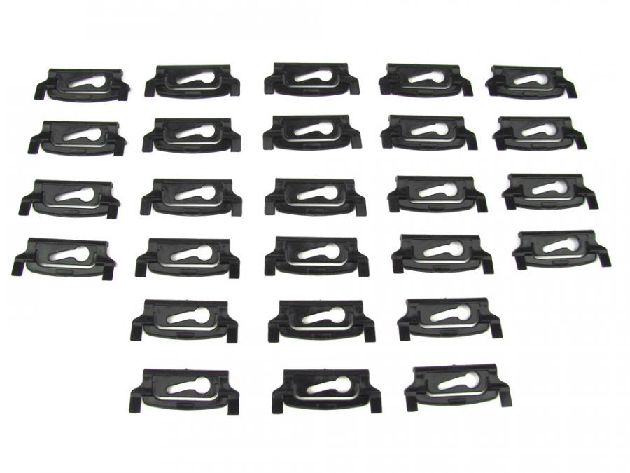 Precision Molding Clip Kit PCK-952-84 provides replacement clips designed to secure clip-on windshield trim. Intended for vehicles that use clip-on windshield molding, this kit restores a clean, tight fit between trim and glass to prevent rattles, water intrusion, and trim separation. Made for durability and reliable retention, the clips simplify restoration and maintenance of exterior trim while saving time compared with custom fabrication or repeated temporary fixes. Verify fitment for your vehicle models with clip-on windshield trim before installation.