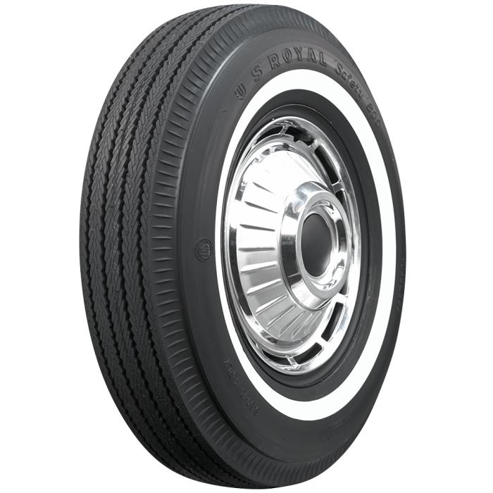 U.S. Royal pie crust narrow whitewall tires are made in the USA in the original molds and backed by our life of the tread warranty. These tires feature classic pie crust upper sidewall styling and narrow whitewalls. The U.S. Royal product line offers direct OE bias ply replacement tires for cars from the 1940s to the 1960s. Please note that dimensions listed tread width, section width and overall diameter are non-scientific and based on an inflated tire, mounted on a wheel. Dimensions may vary due to rim width and inflation pressure. Tread patterns and sidewall styles vary, please click on individual tires to view photos.