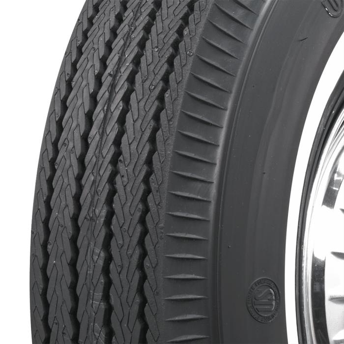 This product features a genuine narrow whitewall sidewall style. This means that the bright white rubber is added directly to the tire sidewall during initial construction of the carcass, resulting in a truly integrated, high-quality product after vulcanization. When we reference "narrow whitewall" tires, we typically mean a whitewall that measures less than two inches, but it can also mean a whitewall that does not reach all the way into the bead. Narrow whitewall tires are popular for many cars built in 1960's all the way into the 1990's.