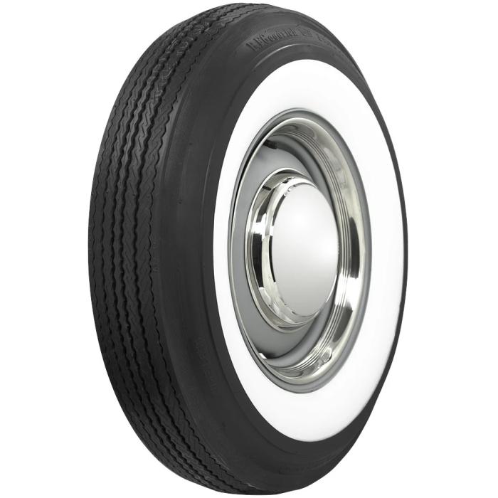 This product features a genuine wide whitewall sidewall style. This means that the bright white rubber is added directly to the tire sidewall during initial construction of the carcass, resulting in a truly integrated, high-quality product after vulcanization. Wide whitewall tires were a very popular choice from the 1930's through the end of the 1950's, and were eventually phased out of mainstream production by 1962. Originally, wide whitewall tires featured a bias ply construction, Coker Tire offers these tires in both original style bias ply and modern radial construction.